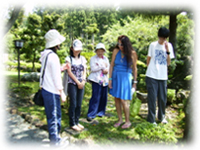 天気が良い時に講師とともに学校の庭を歩き途中で目に入ってくる物を英語で説明する練習をします。