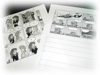漫画の吹き出しに絵から連想される内容を吹き出しに英文を入れ、その後講師が確認し的確な表現に修正します。
